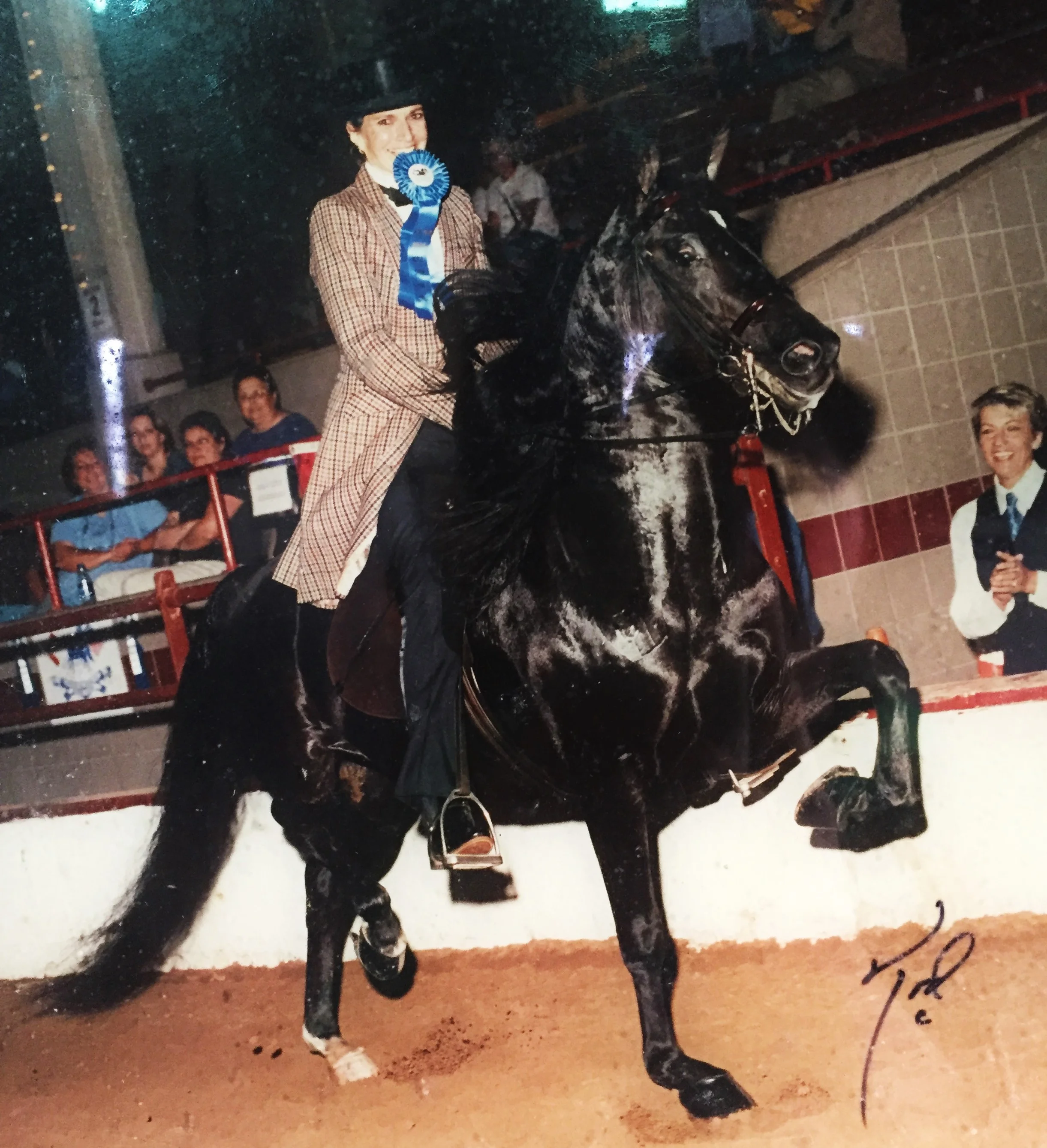 Mom with her blue ribbon stallion, Edoxus. She didn't get to this level by letting fear or failure hold her back!